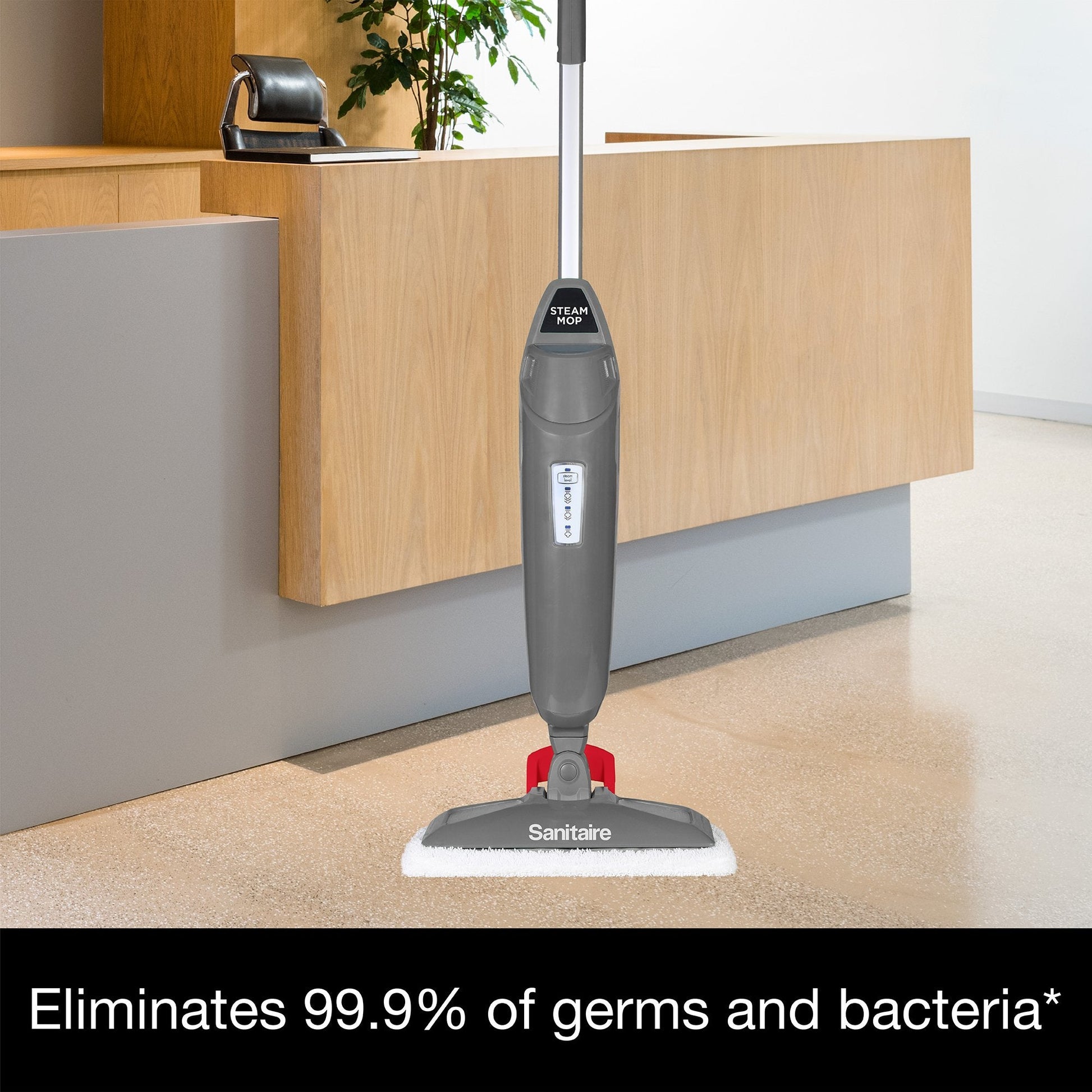 Clean and sanitize* sealed hard floors; Eliminates 99.9 percent of germs and bacteria. *Using the microfiber pad. Use as instructed. Results may vary. Tested under controlled laboratory conditions.